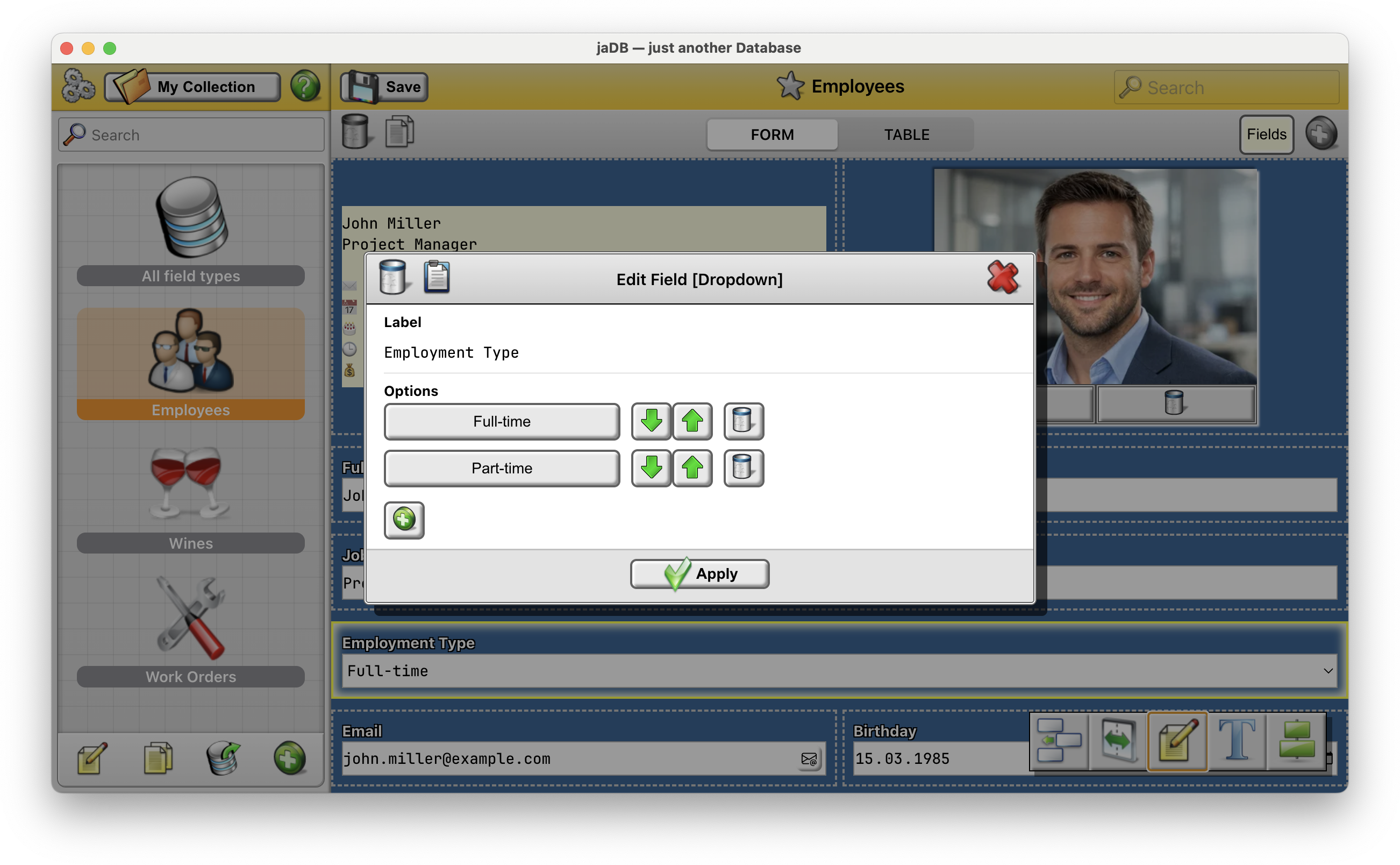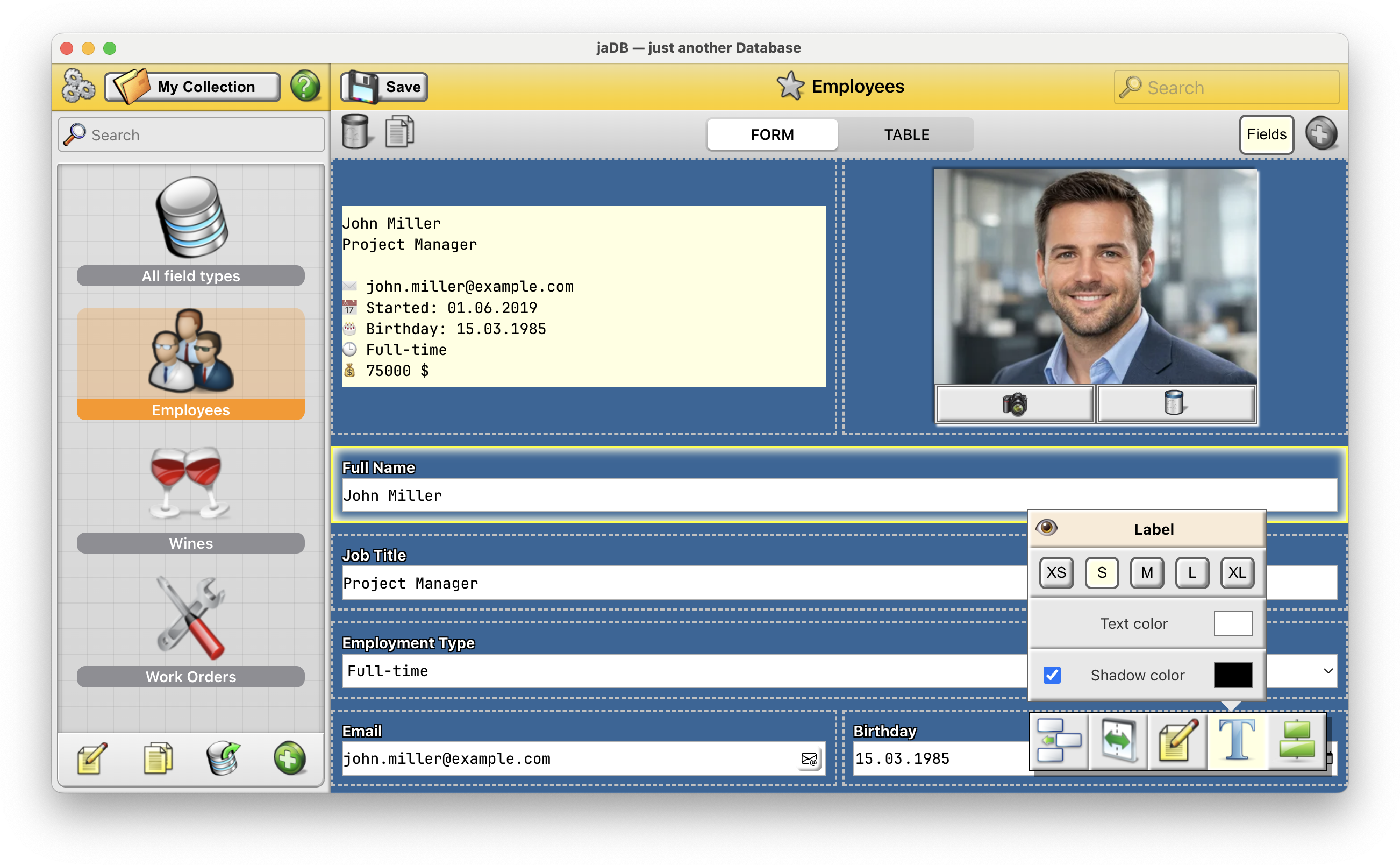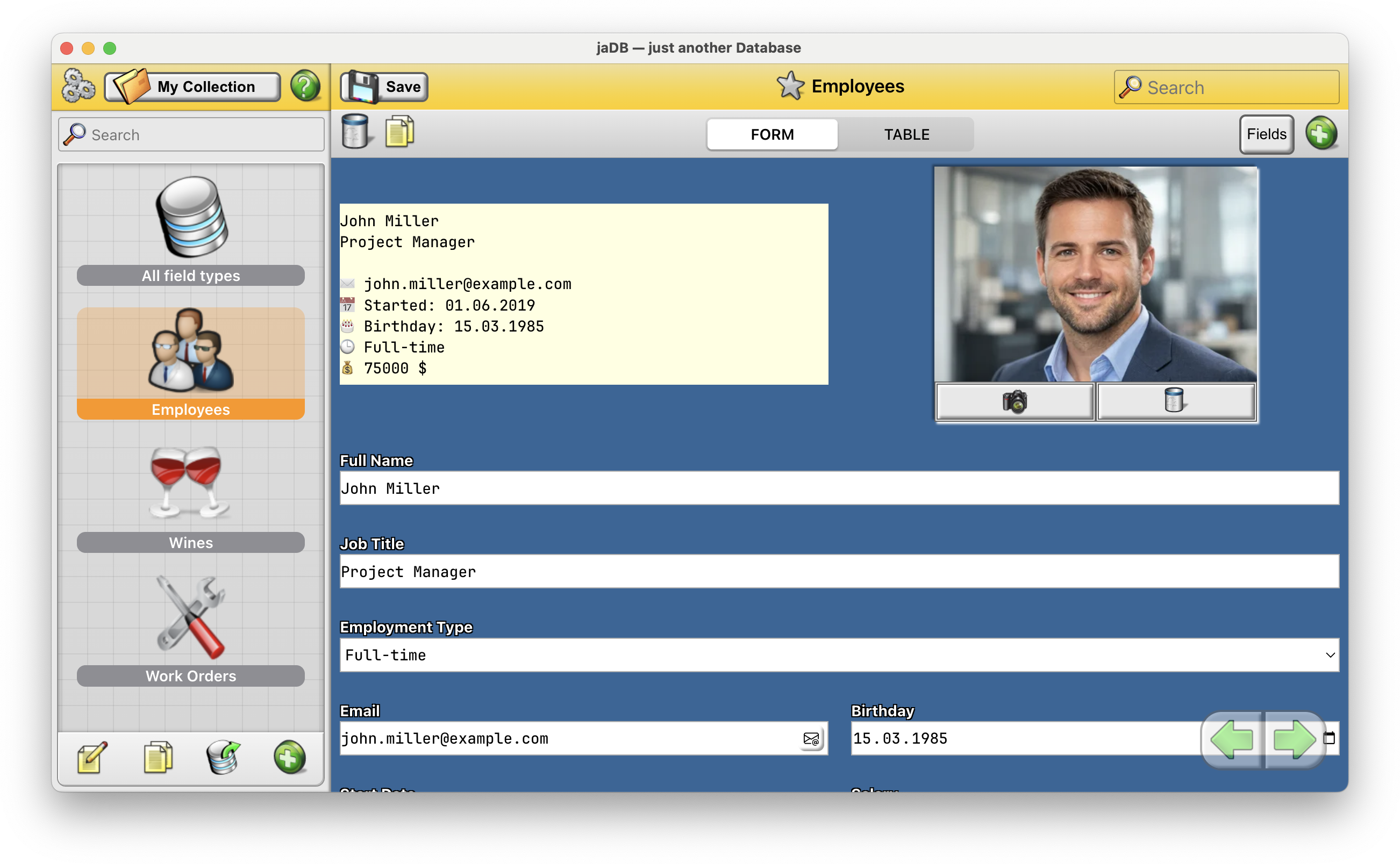 just another Database (jaDB) is a personal database to store, manage, and organize data in an easy and intuitive way. With a diverse range of fields, it is well-suited for your hobbies and daily tasks.
